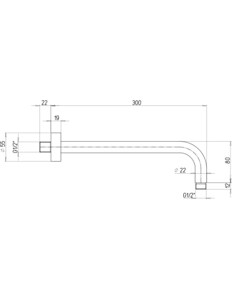 Braccio doccia Jacuzzi tondo a parete lunghezza 300mm diam. 22 mm art. 1111071JA00 cromato.