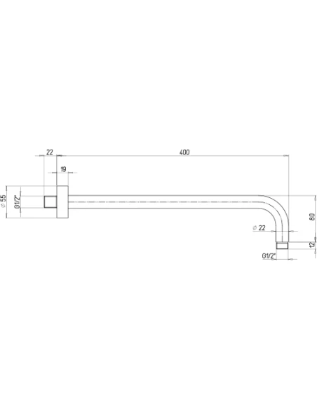 Braccio doccia Jacuzzi tondo a parete lunghezza 400mm diam. 22 mm art. 1111073JAYO nero opaco