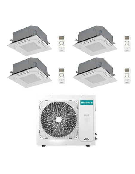 Climatizzatore Condizionatore Hisense Cassetta 4 vie R32 Quadri Split Inverter 9000 + 9000 + 9000 + 18000 BTU Classe A++/A+