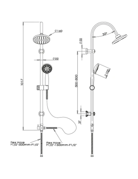 Colonna doccia Piralla serie Milano regolabile a fori esistenti con deviatore meccanico 0HR00846B16