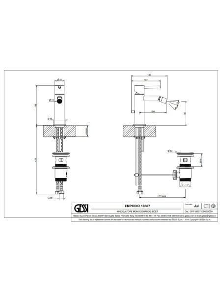 Gessi VIA TORTONA miscelatore bidet, con scarico e flessibili di collegamento, finitura cromo 18607#031