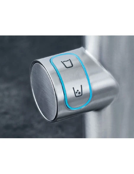 Se la tua scelta è acqua leggermente frizzante, premi entrambi i pulsanti in successione – l’indicatore LED si illuminerà di turchese – per ottenere un bicchiere d’acqua finemente perlato.