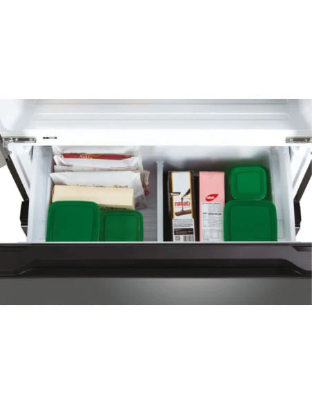 H-FRIDGE 700 MAXI, dotato di due porte frigo in alto e due porte freezer in basso, consente la massima capacità di stoccaggio per oltre 400 litri e può adattarsi a qualsiasi stile di cucina. La tecnologia Total No Frost garantisce le migliori prestazioni e una conservazione più sana.