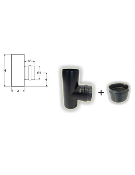 N° 1 Snodo a T con tappo M/F/M Stufa Pellet Ø 80mm in acciaio al carbonio