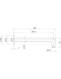 Braccio Doccia Jacuzzi A Parete Lunghezza 300mm Sezione Quadra 25x25mm Art. 1111006JAYO Nero Opaco