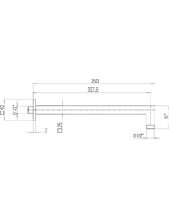 Braccio Doccia Jacuzzi A Parete Lunghezza 350mm Sezione Quadra 25x25mm Art. 1111007JAYO Nero Opaco