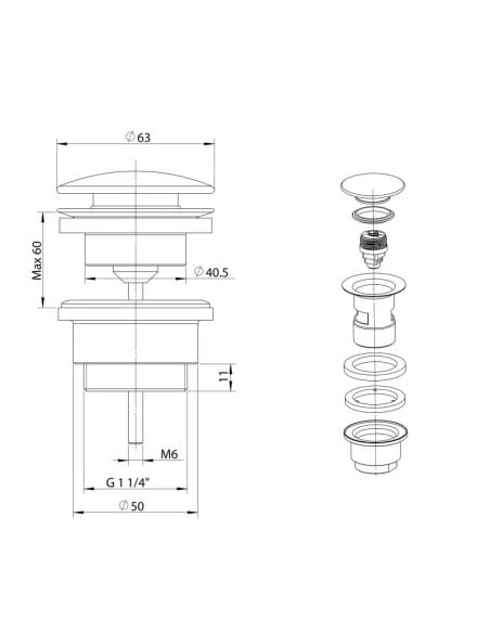 Piletta di scarico Jacuzzi Rubinetteria click-clack universale per bidet – lavabo cromo 1751051JA01, compatibile con tutte le ceramiche lavabo e bidet grazie alla connessione standard 1″1/4. Garanzia 10 anni.