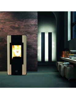 Stufa A Pellet 7 Kw Ventilata Anselmo Cola Ambra Lux Con Porta A Specchio Colore Avorio