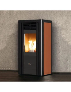 Stufa A Pellet 8,2 Kw Ventilata Anselmo Cola Avana Plus Ermetica In Acciaio Colore Bronzo