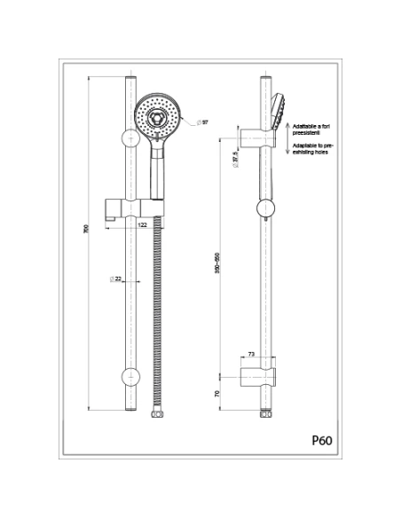 Saliscendi Piralla serie Forest art. 50CR124/P60/3PIBM doccia anticalcare 3 getti, flessibile 1,5m, finitura cromata.
