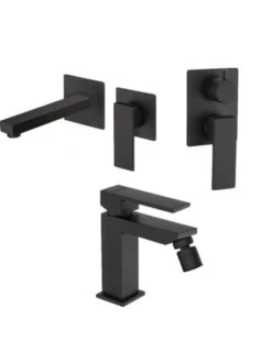 Set Rubinetti Jacuzzi per lavabo a parete e bidet senza scarico e doccia incasso con deviatore serie Twinkle YO nero opaco