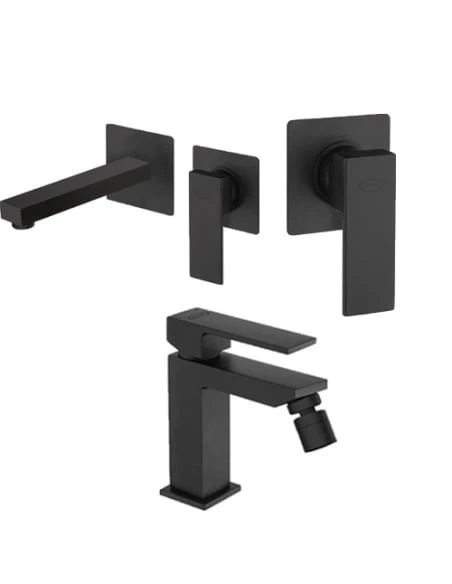 Set Rubinetti Jacuzzi per lavabo a parete e bidet senza scarico e doccia incasso serie Twinkle YO nero opaco