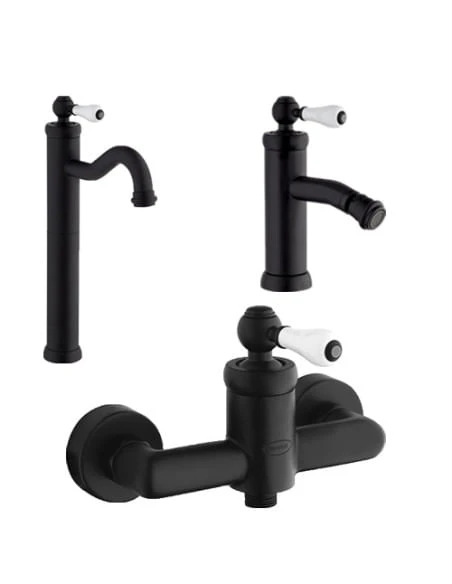 Set Rubinetti Jacuzzi per lavabo alto e bidet senza scarico e doccia esterno serie Tosca YO nero opaco
