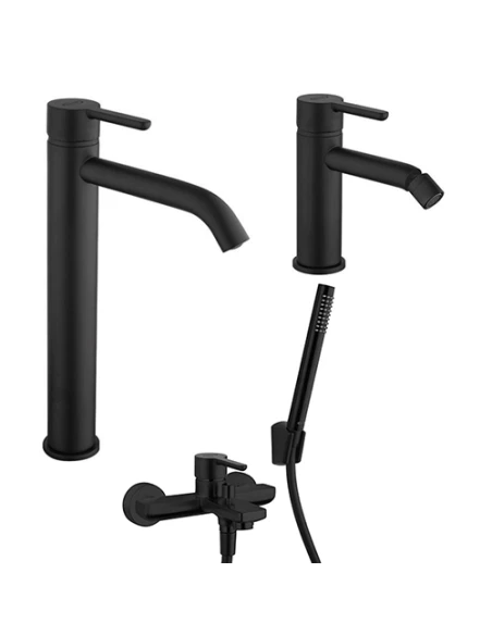 Set Rubinetti Jacuzzi per lavabo alto e bidet senza scarico e vasca serie Sunset YO nero opaco