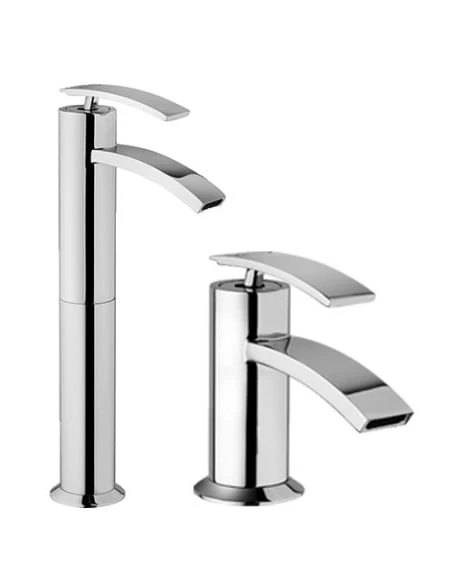 Set rubinetti Jacuzzi per lavabo alto e bidet serie Ray con rubinetto miscelatore per lavabo alto senza scarico art. 0IO00493JA00 e rubinetto miscelatore per bidet senza scarico art. 0IO00092JA00 finiture cromo.