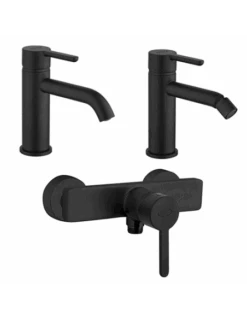 Set Rubinetti Jacuzzi per lavabo e bidet senza scarico e doccia esterno serie Sunset YO nero opaco