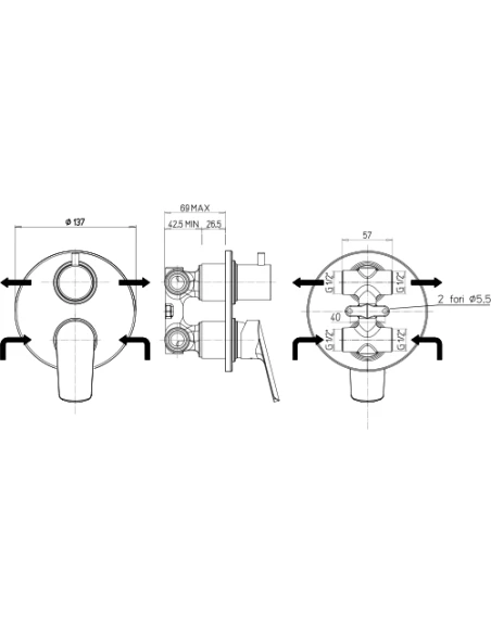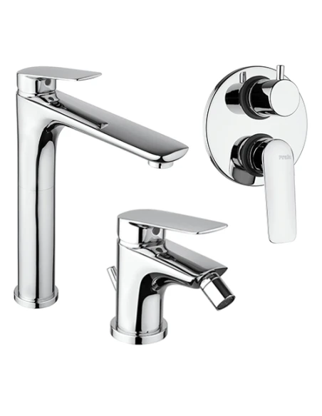 Set rubinetti Piralla per lavabo alto, bidet e doccia incasso con deviatore serie Lago con rubinetto miscelatore per lavabo alto con scarico automatico 1”1/4 art. 0LG00488A22 e rubinetto miscelatore per bidet con scarico automatico 1”1/4 art. 0LG00094A22 e miscelatore a incasso per doccia con deviatore art. 0LG00400A22 finiture cromo.