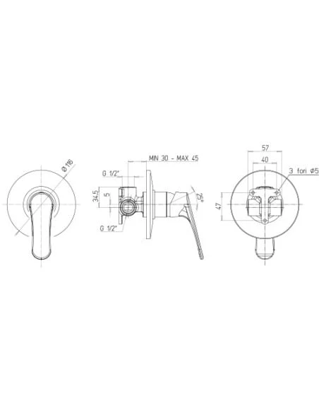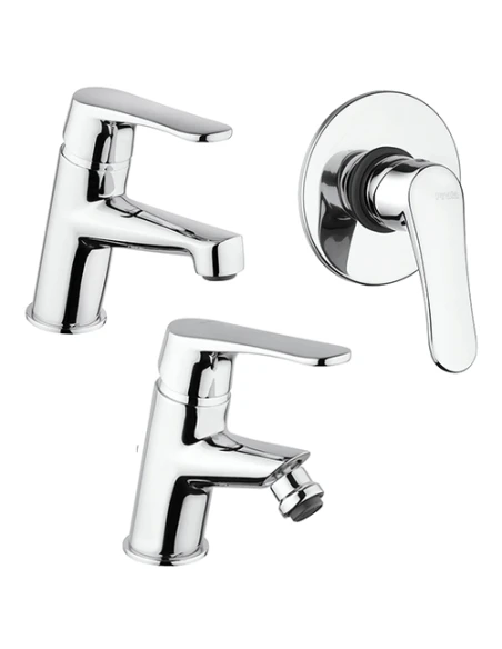 Set rubinetti Piralla per lavabo, bidet e doccia incasso serie Attila con rubinetto miscelatore per lavabo con scarico automatico 1”1/4 art. 0AT00088A22 e rubinetto miscelatore per bidet con scarico automatico 1”1/4 art. 0AT00094A22 e miscelatore a incasso per doccia art. 0AT00410A22 finiture cromo.