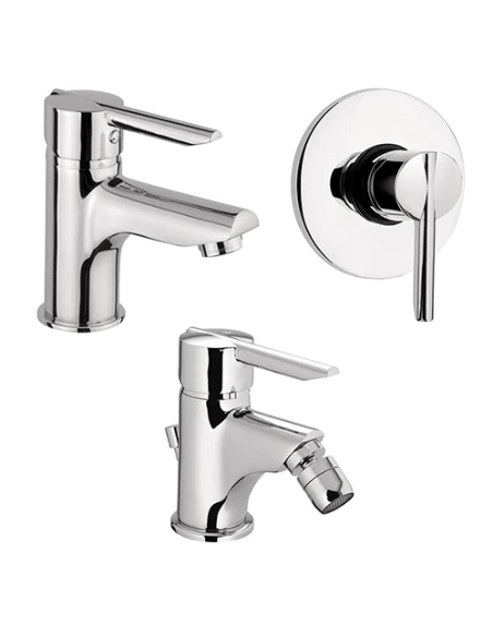 Set rubinetti Piralla per lavabo, bidet e doccia incasso serie Serena con rubinetto miscelatore per lavabo con scarico automatico 1”1/4 art. 0SE00088A16 e rubinetto miscelatore per bidet con scarico automatico 1”1/4 art. 0SE00094A16 e miscelatore incasso per doccia art. 0SE00410A16 finiture cromo.