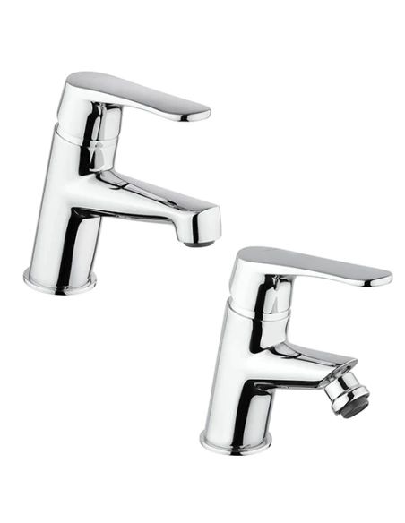 Set Rubinetti Piralla per lavabo e bidet con scarico automatico serie Attila cromato