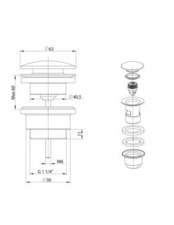 Piletta Di Scarico Jacuzzi Click-clack Universale Per Bidet – Lavabo Cromo 1751051JA01