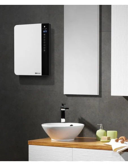 Termobagno a muro di design. Tecnologia digitale per riscaldare rapidamente il vostro bagno con il minimo ingombro