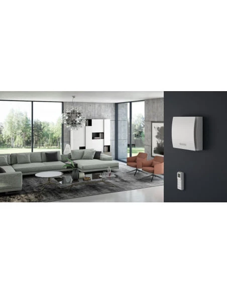 Unità di VMC decentralizzata a singolo flusso alternato: non estrae soltanto l’aria interna e immette quella proveniente dall’esterno, ma grazie al suo innovativo motore brushless EC il suo riciclo dell’aria aiuta a prevenire i problemi causati dall’umidità tra cui le muffe. Inoltre il suo filtro antipolvere purifica l’aria e con lo scambiatore termico in ceramica recupera il calore e consente un mantenimento della temperatura interna costante.